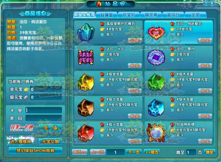 刚去游戏逛了下、发现商城增加了龙晶、和宠物包包石。不多说、上图!!另外返生丹体验服的福缘兑换比例又涨了、昨天还是1000的、今天变2000了哎!!